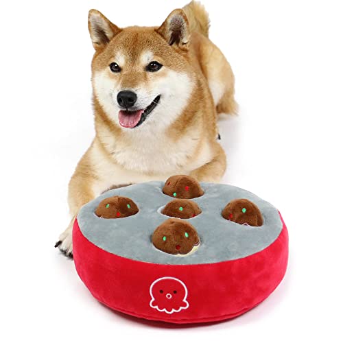 大阪では一家に一台あると言われているたこ焼き器の形をしたノーズワークトイです。おもちゃのたこ焼きの下におやつを入れるだけなので簡単に扱えます。