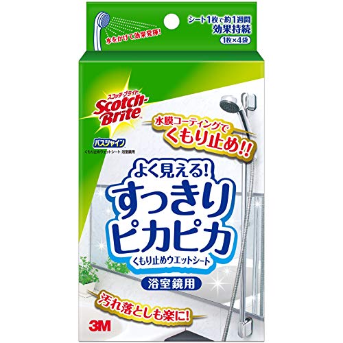 ウエットシートで鏡をサッと拭いた後、シャワーで洗い流すだけの手軽さなので、気がついた時にすぐに使えて便利です。約1週間の効果があるので、お風呂掃除の際に一緒にしておくと、快適なバスタイムが過ごせます。鏡の曇り防止だけでなく、入浴後にシャワーをかけるだけで汚れが落としやすくなるので、お掃除も楽になると思います。4枚セットで1ヶ月分使用できるので、まとめ買いにもぴったりです。