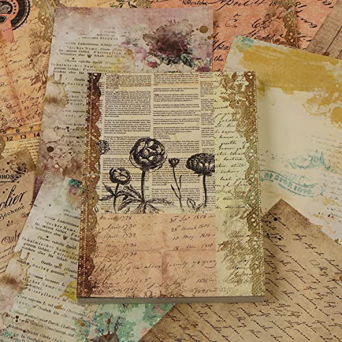 コラージュ素材には英語のローマ字がおすすめです。これがあるだけで随分お洒落度が違ってきます。こちらの商品は英語で綴った古ぼけたノートの柄です。大きさの違うレタリングアートや手書き文字、インクがにじんだような跡や素朴な植物の柄がありアンティークさがとても素敵な色合いをかもしだしています。これの周りを水で濡らして手でちぎるようにしてわざとギザギザにするとかっこいいですよ。味のある作品になりそう!
