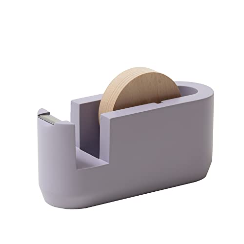 イデアコのパープルのテープカッターでテープをセットする所が木製でお洒落だなと思いました。丸みのある感じで優しいパープルカラーでいいなと思いました。