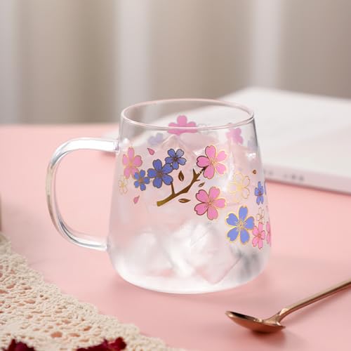 耐熱ガラスのグラスで温度で色が変わる持ち手付きのマグカップでお洒落だなと思いました。クリアな感じに桜が咲いていて色の変わりを楽しめるので嬉しいかなと思いました。耐熱なのでお酒でも紅茶でも飲めていいなと思いました。