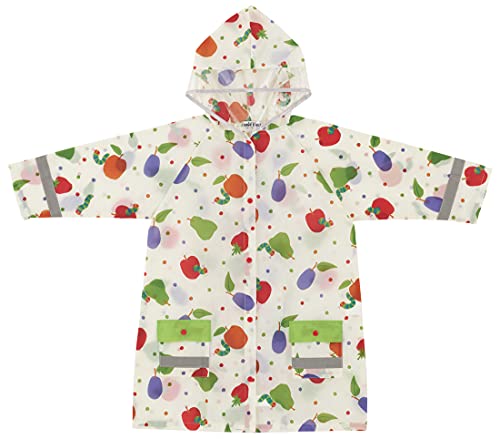 はらぺこあおむしのかわいいデザイン、カラフルで映えるレインコートです。フード付き、ポケットもあり、撥水性も高く濡れません。