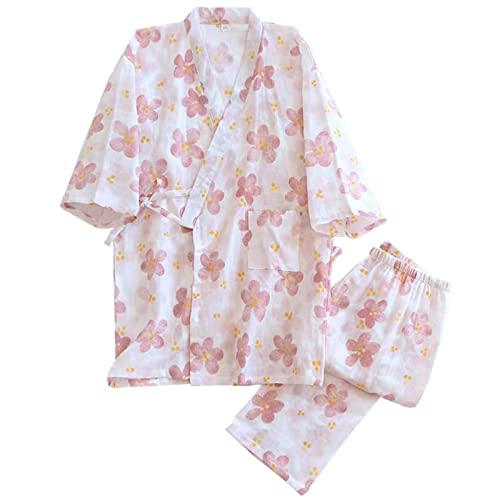 ピンクのお花のデザインで、とてもおしゃれです。しじら織りの素材で、おしゃれで通気性がよく着心地がいいです。