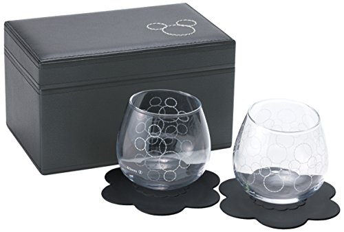 黒いシリコンコースターが付いたペアグラスセットです。合成皮革製のボックスがプレゼントにピッタリですね。
