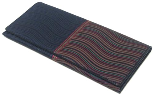 博多の雑貨のお土産のおすすめはこちらです。博多織の長財布です。博多の伝統的な織物である博多織。細い経糸と太い緯糸を組み合わせ、生地の張りが強いのが特徴です。こちらの長財布はシックな感じで和装小物はちょっと渋めの方が品位があるのでおすすめです。