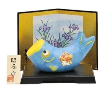 昭峰作の美濃和紙製でできた立体的な鯉のぼりの置物はいかがでしょうか? 淡いパステルブルーとイエローを中心にした明るい色合いでかわいさのあるデザインなので洋のお部屋にも似合うと思います。背景の金屏風には端午の節句の頃に咲く菖蒲のお花模様もあります。省スペースに飾りながら男の子の成長を願う行事をお祝いできてお薦めですよ!