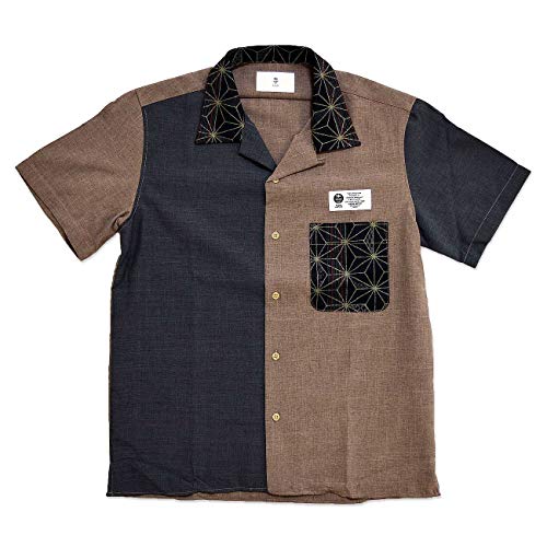アシンメトリーなデザインがお洒落な、切替開襟半袖シャツです。和風が好きならブラウン・洋風が好きならブラックがおすすめです。