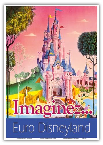 フランスのユーロディズニーランドのポスターで、おしゃれです。眠れる森の美女のお城のデザインで素敵です。35.6cm ×25.4cm のサイズで飾りやすい大きさです。