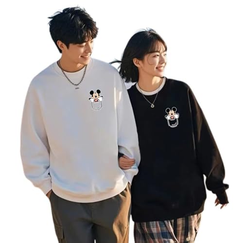 こちらのカップルでペアでも着用できるミッキーデザインのトレーナーはゆったりした着心地で、カジュアルコーデにも合わせやすいのがいいです。ディズニー旅行にも最適で、綿素材で肌触りもいいです。