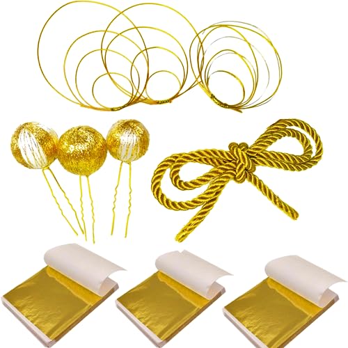 金箔と一緒に金色の水引きやカスミソウ組紐などもセットになっているkamimoの髪飾りセットはいかがですか。