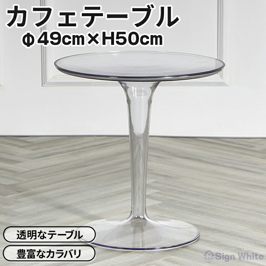 1人暮らしのお部屋に、こちらの丸型カフェテーブルは如何でしょうか。クリアカラーのプラスチックで出来ているので、部屋に圧迫感を与えず、インテリアとしてスタイリッシュです。エッジは面取りされていて、安全なところもおすすめです。