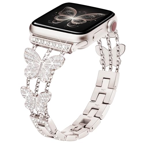 手元を一気に華やかにする蝶モチーフとキラキラ感が、コーデの主役になる可愛さ。夏でも蒸れにくい軽やかな着け心地で、長時間でも快適に使える。サイズ調整が簡単なのでフィット感も抜群。スターライトカラーは上品で肌なじみが良く、普段使いからお出かけまで幅広く活躍。Apple Watch各シリーズに対応し、気分や服装に合わせて印象を変えられる、実用性とデザイン性を兼ね備えた人気バンド。