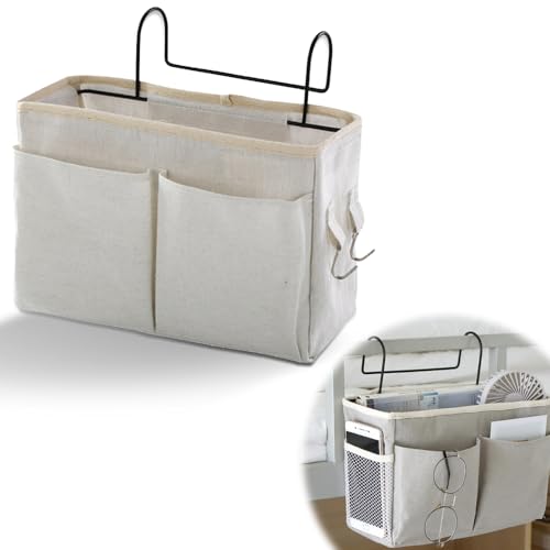 ベッドガードに引っ掛けるだけで使える収納ポケットはいかがでしょう?いちいちベッドを降りて収納ラックまで物を取りに行かなくても良いのが便利です。リモコンなどの小物を整理して入れられるのが便利です。
