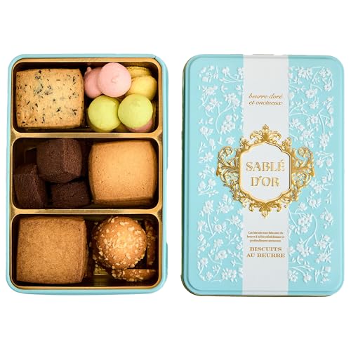 サブレドール クッキー缶が、ブルーのデザインで爽やかでおしゃれですショコラや、プレーンな味わいで美味しいです6種類 セットで楽しめます