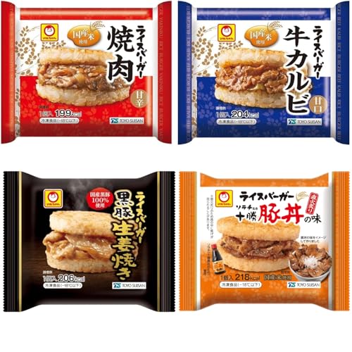 一人暮らしや忙しい人にぴったりな冷凍食品、ライスバーガー12個セットです。焼肉、牛カルビ、豚丼、黒豚生姜焼きの4種類のライスバーガーが3個ずつ、12個のセットで、電子レンジでチンして手軽に食べることができます。肉系のライスバーバーのためボリュームがあり、食事としても、小腹がすいたときのおやつとしても食べることができます。