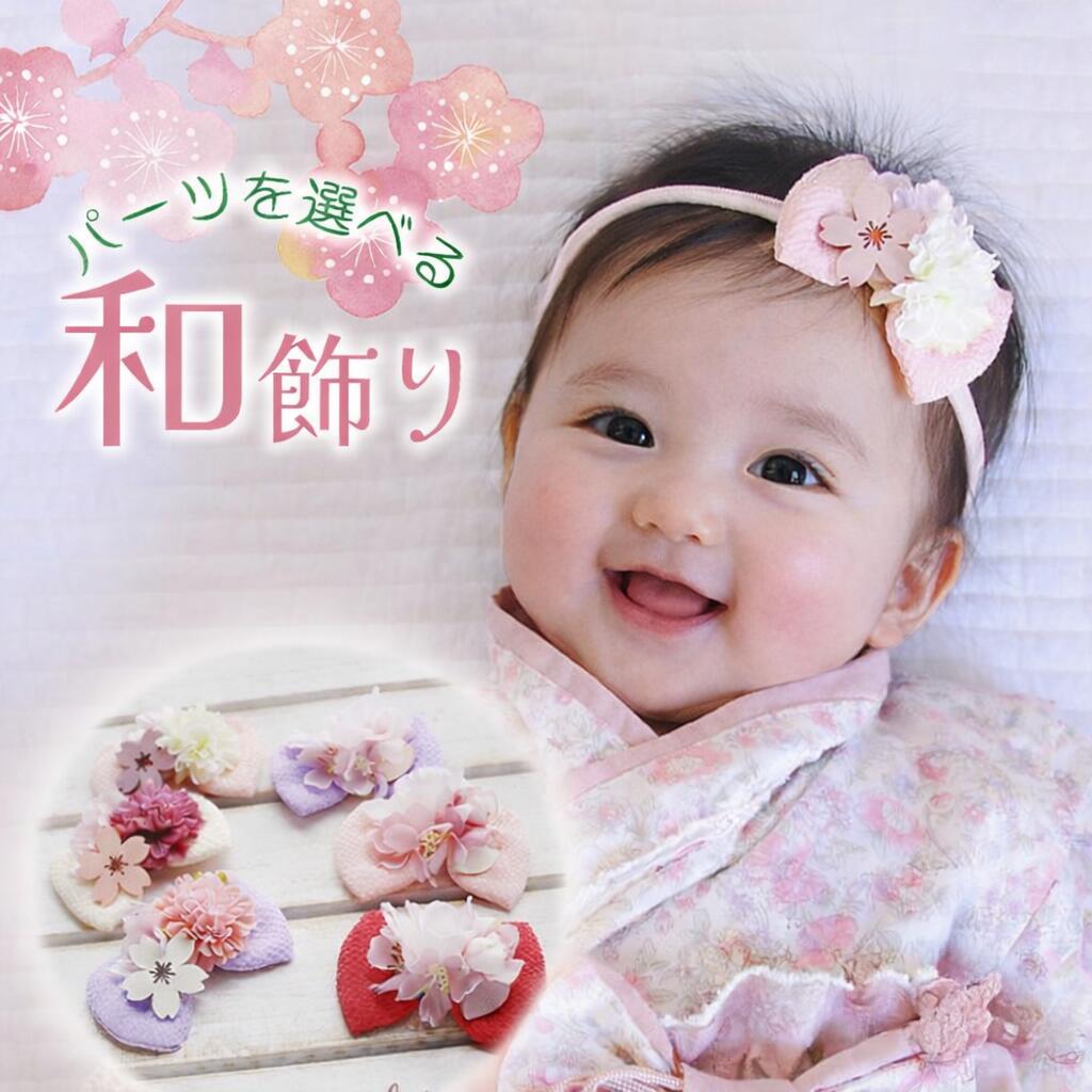 ひな祭り用にぴったりな赤ちゃん用の桜和飾りです。髪に取り付けるパーツの種類が選択可能になっているので、赤ちゃんの場合は柔らかいリボンモチーフをおすすめします。パチッと髪に挟んで使うクリップタイプを選ぶと、特に柔らかい赤ちゃんの髪や頭皮を傷める可能性があります。飾りのモチーフは春にぴったりな桜の花で、色味も優しいピンク色でとても可愛いですよ。