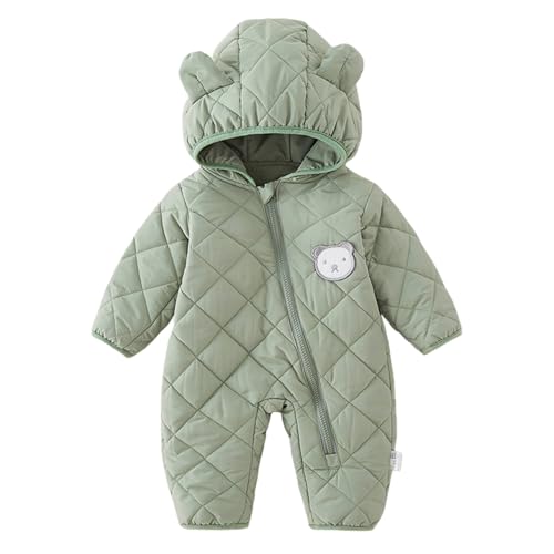 保温性に優れた中綿入りのキルティング生地が使われているロンパースはいかがですか。フード付きタイプです。