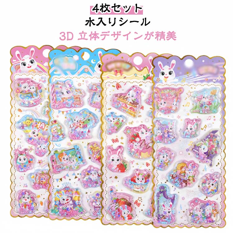 水やラメが動く様子が美しいウォーターシールは、手帳や小物を一気に華やかにする写真映え抜群のアイテムです。ぷっくりとした立体的な3D仕様で、触り心地も楽しめます。精巧なデザインが揃った4枚セットなので、自分だけの個性的なデコレーションが手軽に完成します。手芸やDIYに最適な、可愛くて特別なシールです。