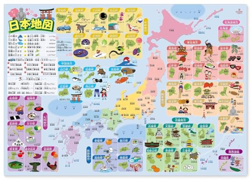 見やすいカラーポスターで各都道府県の名産も一緒に表記されているのでヨミと名産を自然に覚えることができます。