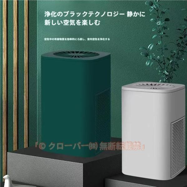 コンパクトサイズの卓上空気清浄機です。USB給電式になっています。除菌、脱臭ができ、花粉やほこりを除去できます。ペットがいるご家庭でも使えますよ。静音なので、寝室に置くこともできます。