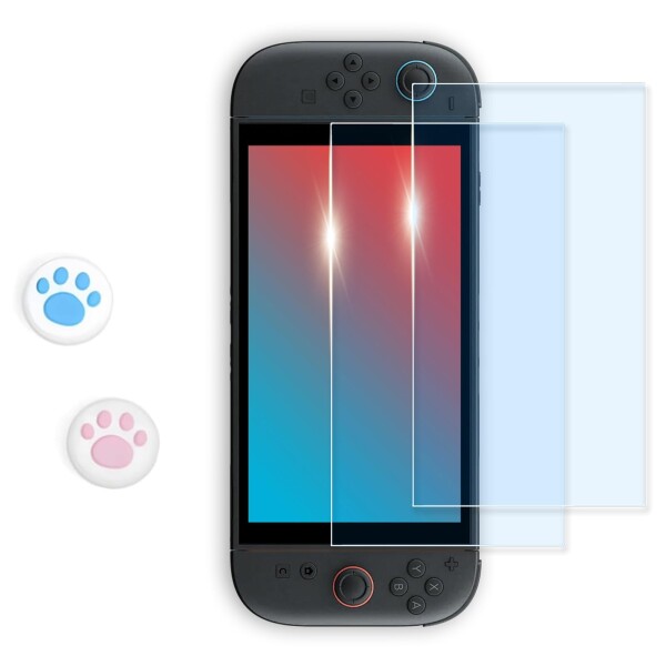 こちらのスイッチ2用保護ガラスフィルムは如何でしょうか。高硬度を誇る旭硝子のガラスフィルムを採用していて、液晶画面を衝撃から守ることが出来ます。ブルーライトカットコーティングが施されているので、目にも優しいです。厚さ0.3mmで、タッチパネル感度も良くておすすめです。