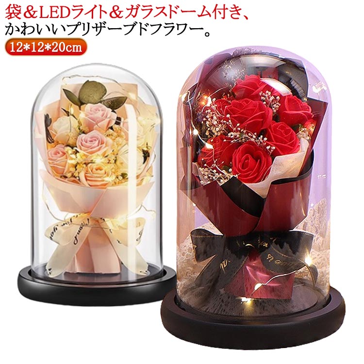 母の日のプレゼントに、こちらのソープフラワーは如何でしょうか。バラの花束をモチーフにしたソープフラワーが、コンパクトで丸みを帯びた可愛らしいガラスドームに入っているので、ホコリを被ることなく長年キレイに飾ることが出来て、お部屋のインテリアとしてもおすすめです。