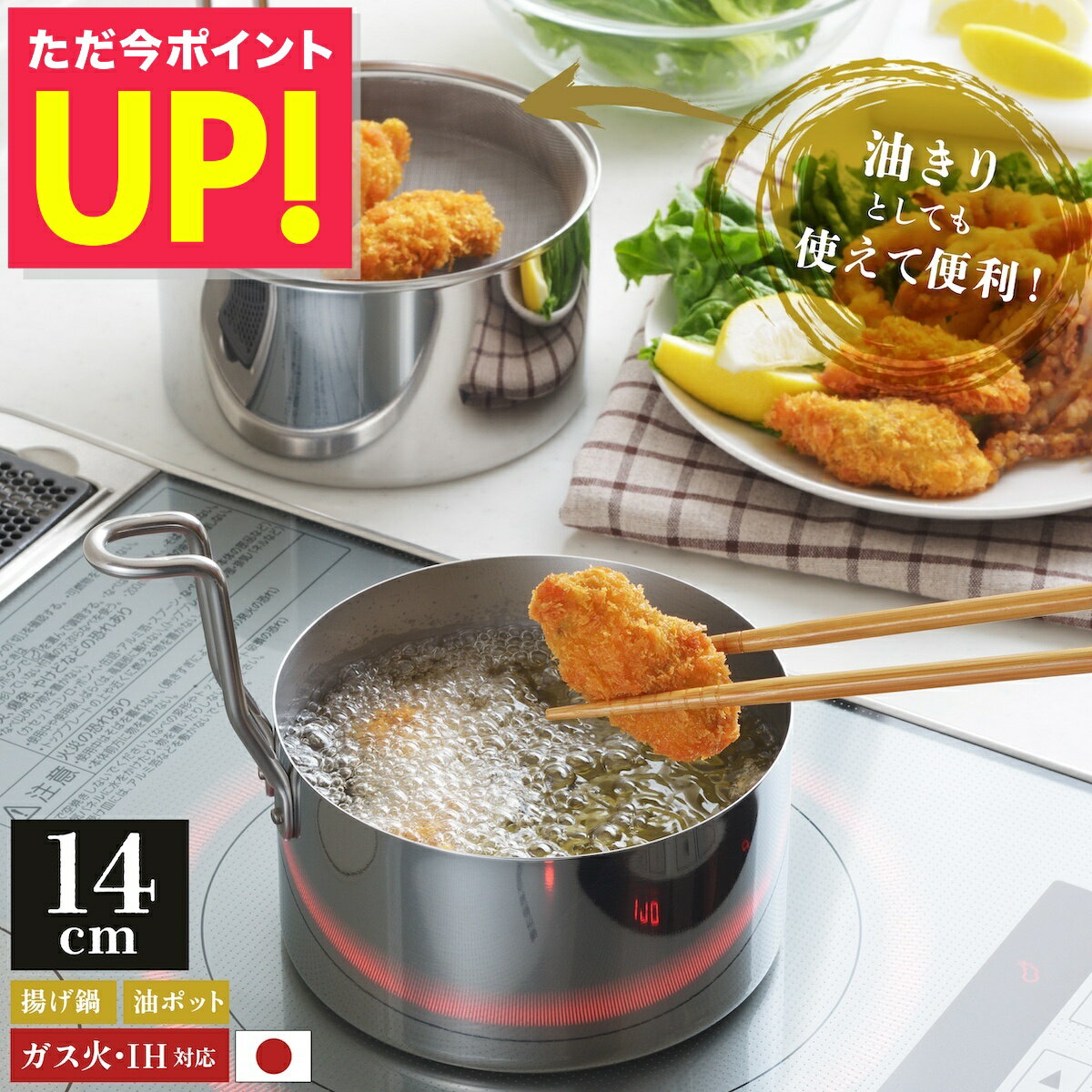 本ページはプロモーションを含みます取っ手も場所を取らない 油ターン 14cm コンパクト天ぷら鍋 燕三条製 日本製 ih IH対応 ガス火対応 オール熱源対応 一人暮らし 揚げ物鍋 ステンレス ミニ天ぷら鍋 網付き 天ぷら鍋セット 少ない 油 油節約 アーネスト p10この商品をサイトでみるみんなのおすすめコメント(全1件)Turkey2026/02/12通報信頼の燕三条製、「油の片付けが一番嫌い」という方におすすめの一品です。2つの鍋がセットになっていて、片方が揚げ鍋、もう片方がオイルポットの役割を果たし、揚げ終わったらもう片方の鍋に濾してそのまま蓋をして収納でき、次に使う時はまた入れ替えるだけという画期的な仕組み。14cmのコンパクトサイズでお弁当作りなどにも使いやすく、コンロの上でも邪魔にならず、収納スペースも最小限で済むアイデア商品です!小さい揚げ物鍋はどれが良い?買ってよかったフライ用鍋のおすすめは?取っ手も場所を取らない 油ターン 14cm コンパクト天ぷら鍋 燕三条製 日本製 ih IH対応 ガス火対応 オール熱源対応 一人暮らし 揚げ物鍋 ステンレス ミニ天ぷら鍋 網付き 天ぷら鍋セット 少ない 油 油節約 アーネスト p10この商品をサイトでみるこのアイテムが投稿された質問小さい揚げ物鍋はどれが良い?買ってよかったフライ用鍋のおすすめは?カウナラ取っ手も場所を取らない 油ターン 14cm コンパクト天ぷら鍋 燕三条製 日本製 ih IH対応 ガス火対応 オール熱源対応 一人暮らし 揚げ物鍋 ステンレス ミニ天ぷら鍋 網付き 天ぷら鍋セット 少ない 油 油節約 アーネスト p10もうすぐ終了 Previous受付中英語タッチペンで子供が英語を覚えられる図鑑や絵本のおすすめは?受付中韓国ドラマ|復讐系で人気のおすすめを教えてください。受付中タッチペン図鑑|ペンで触れて遊びながら学べるおもちゃのおすすめは?受付中カンガルーポケット付きのパーカー|犬を抱っこできる服のおすすめは?受付中母の日に贈るタオル花束のおすすめは?受付中介護士向けメンズズボン|動きやすいボトムスおすすめは?受付中英語タッチペンで子供が英語を覚えられる図鑑や絵本のおすすめは?受付中韓国ドラマ|復讐系で人気のおすすめを教えてください。受付中タッチペン図鑑|ペンで触れて遊びながら学べるおもちゃのおすすめは?受付中カンガルーポケット付きのパーカー|犬を抱っこできる服のおすすめは?受付中母の日に贈るタオル花束のおすすめは?受付中介護士向けメンズズボン|動きやすいボトムスおすすめは?受付中英語タッチペンで子供が英語を覚えられる図鑑や絵本のおすすめは?受付中韓国ドラマ|復讐系で人気のおすすめを教えてください。受付中タッチペン図鑑|ペンで触れて遊びながら学べるおもちゃのおすすめは?受付中カンガルーポケット付きのパーカー|犬を抱っこできる服のおすすめは?受付中母の日に贈るタオル花束のおすすめは?受付中介護士向けメンズズボン|動きやすいボトムスおすすめは? Next