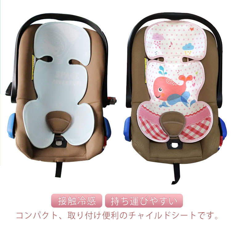 チャイルドシートで使える人気のある冷感シートとしておすすめしたい商品です。おすすめポイントはチャイルドシートに簡単に取り付けできるコンパクトで人気のある冷感シートである点。接触冷感生地でできており、暑い季節に赤ちゃんに使える最適なシートである点。ベビーカーやベビーチェアなどにも利用できる点。洗濯機で丸洗いできる点などです。