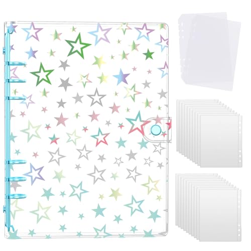 待望のA5サイズのシール帳!クリアで中の台紙が映えるので、推しキャラのシール整理に最適です。台紙がたっぷり20枚も入っているのが嬉しいポイント。さらに、星柄デザインがとても可愛く、コラージュノートとしても大活躍。サイズ感が大きめで、大きなシールもそのまま収納できて大満足です。これは長く愛用できそうです。