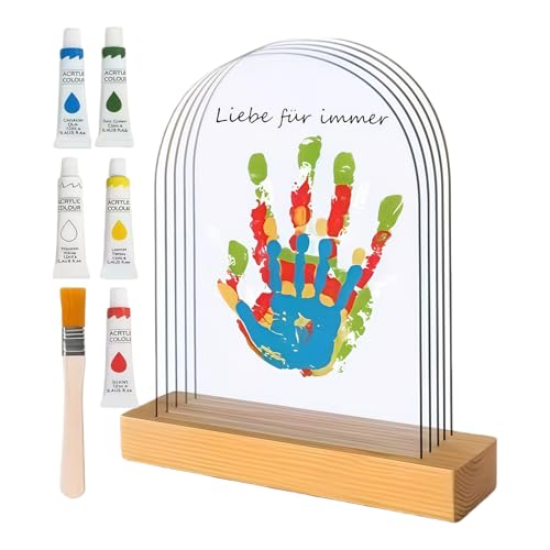 アクリル板に手形を残すことができて おすすめです アクリル板を重ねて飾ることができるので おしゃれで便利で記念になります カラフルな絵の具が付いていてすぐに使えて便利です