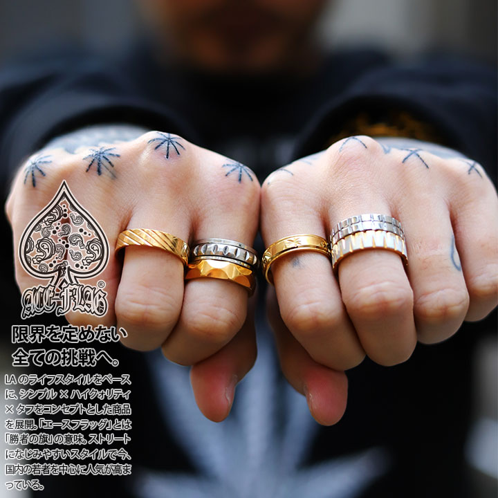 こちらのメンズ向け太いステンレス製リングは如何でしょうか。ラッパーやダンサーなどにも愛用者が多い、ちょっと厳ついデザインがカッコ良くておすすめです。
