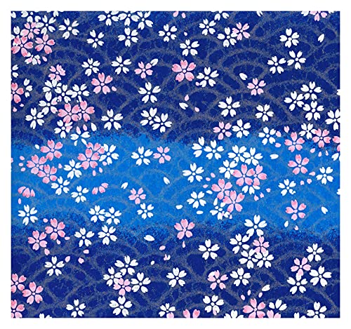 手染め美濃和紙友禅和紙で青に小さな桜が満開のデザインで夜空に咲いているかのような感じでお洒落だなと思いました。一部だけ薄くなっていて綺麗なグラデーションになりそうです。