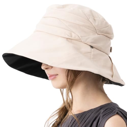 [Loo&c] [ルーアンドシー] 帽子 レディース 大きいサイズ 接触冷感 ノーベルUVハット 完全遮光 紫外線対策 春夏 uvカット 折りたたみ あご紐付き (ベージュ, XL(61-63cm))