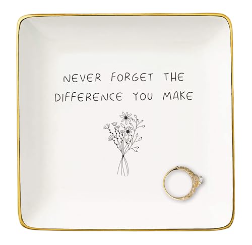 「Never Forget the Difference You Make」のジュエリートレイは、上司や同僚、教師、看護師、友人、姉妹など、日頃お世話になっている女性へ贈る感謝ギフトにぴったり。小物入れやリングディッシュとして使える上品なデザインで、就職祝いにも喜ばれる実用的なアイテム。毎日目にするたびに温かいメッセージが伝わる心のこもったプレゼントです。